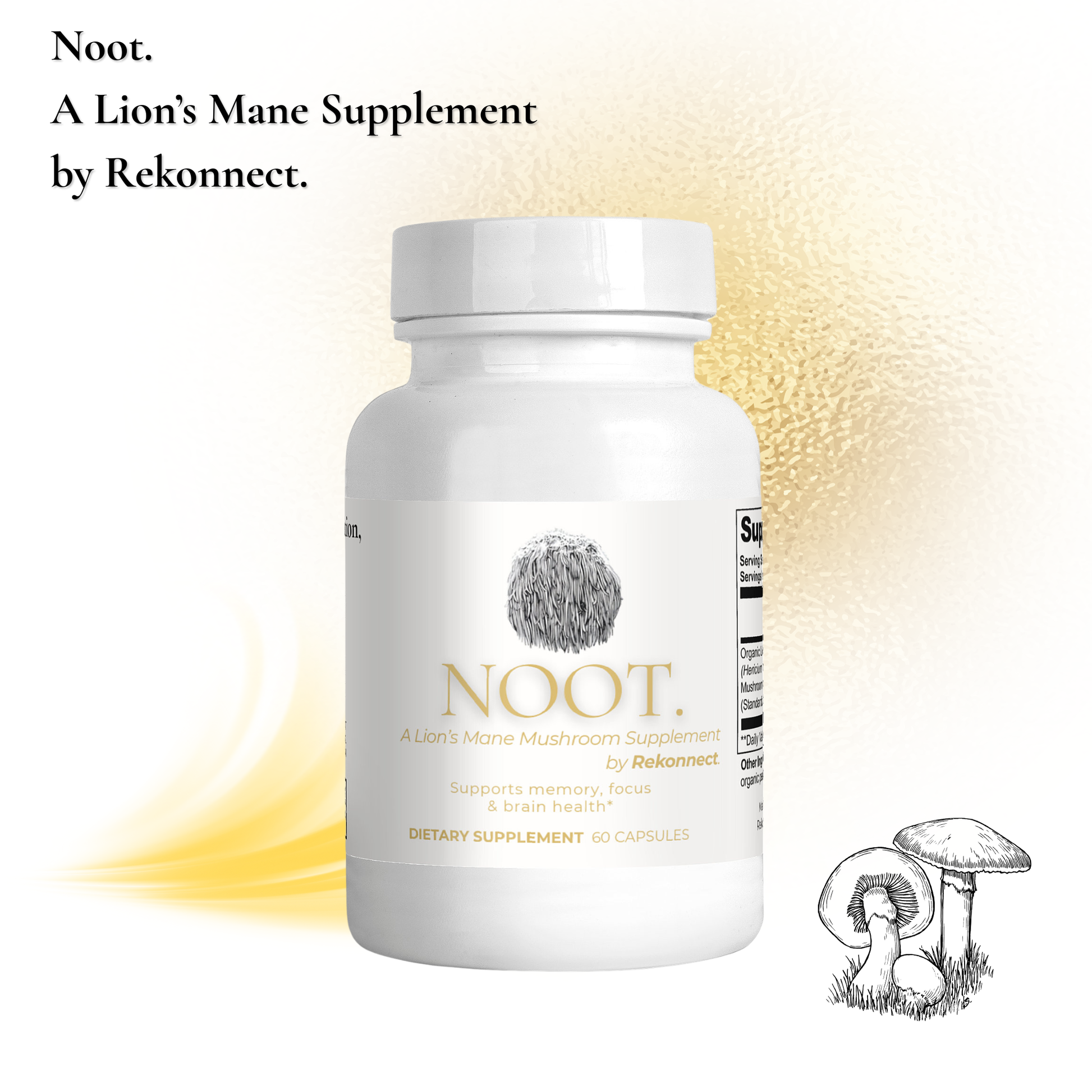 Rekonnect Mind + Body is a premium nootropic blend designed to elevate your mind and body — restoring clarity, calm, and presence through time-honored botanicals. One capsule daily. A ritual for the elevated few. 60 servings per container.